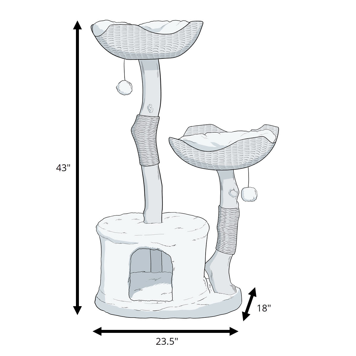 Crafted from premium materials, the Bungalow Cat Tree seamlessly fits into your home decor while offering various platforms for your cat’s enjoyment and relaxation.